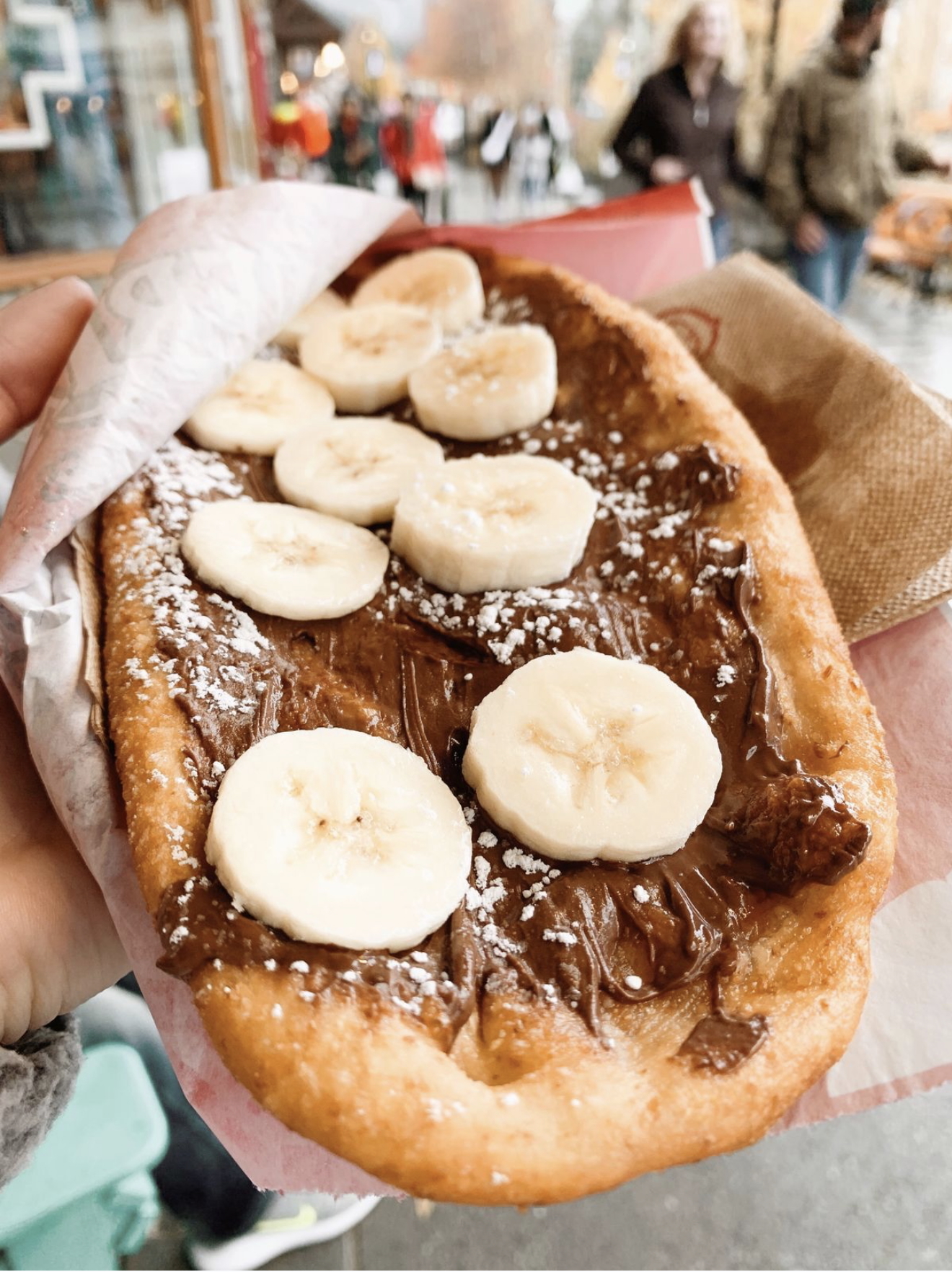BeaverTails are fried pastries shaped like the tail of a beaver. They are covered in toppings like cinnamon sugar, Nutella, bananas, Oreo crumbs or cheesecake drizzle. They are warm, sweet and the perfect treat on a cold night. You will often find BeaverTails stands in resort villages and on mountain peaks.